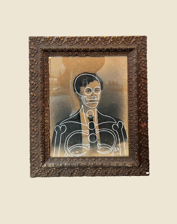 Intertwangled framed photo with paint on glass. Signed by artist.