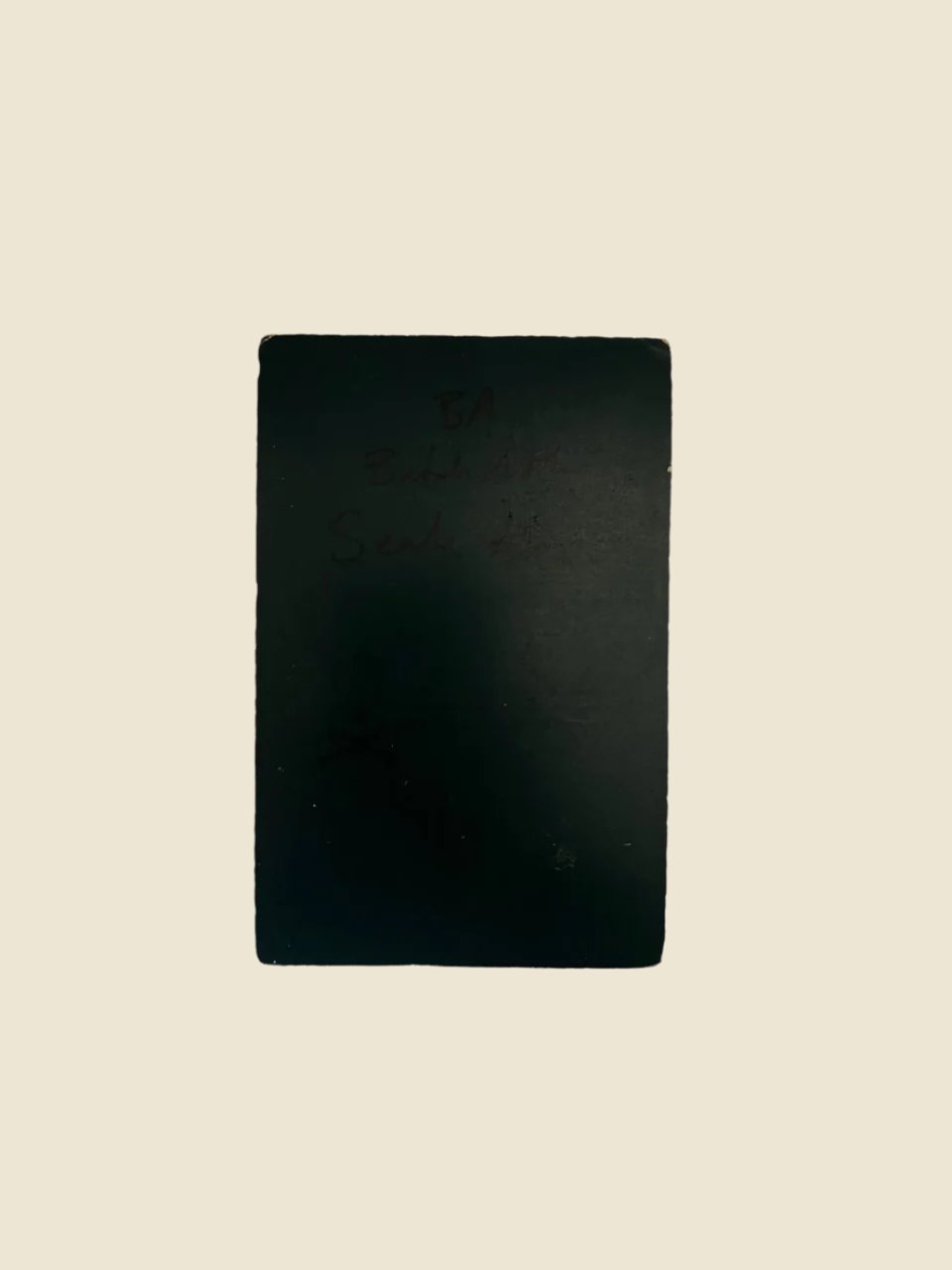 Paint over antique cabinet card. Signed by artist. Unframed.