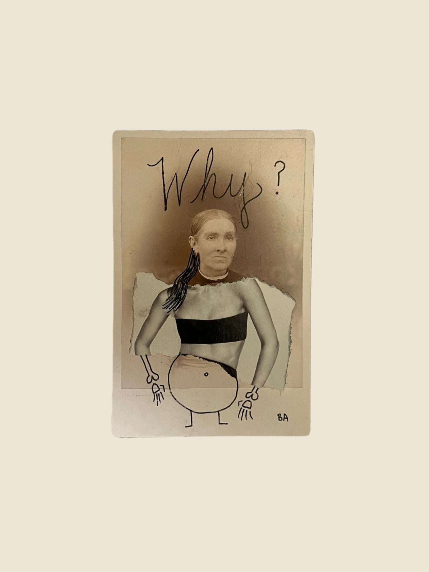 Paint over antique cabinet card. Signed by artist. Unframed.