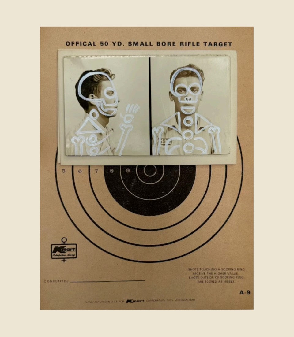 This is a piece consisting of paint on mugshots.