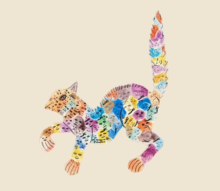 Cat, 16 July 1992. Paint and marker on wood, numbered 25.000.002.