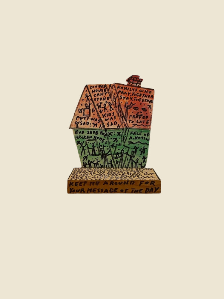 House, 19 December 1989. Paint and marker on wood, numbered 12.000.865.