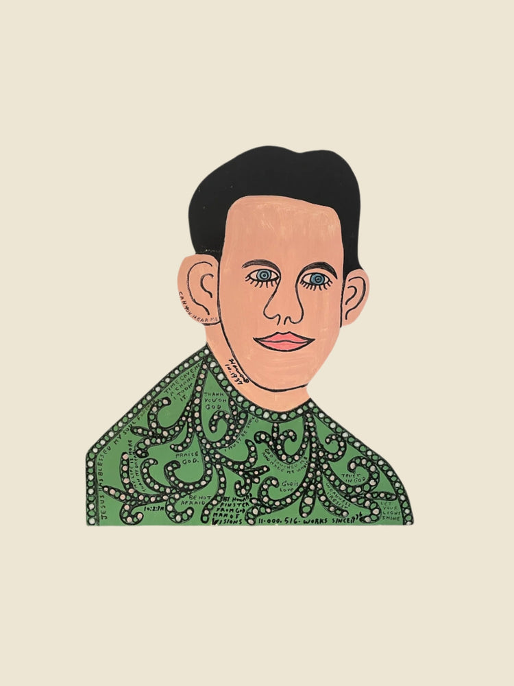 Howard Finster in 1937, 1989. Paint and marker on wood, numbered 11.000.516.