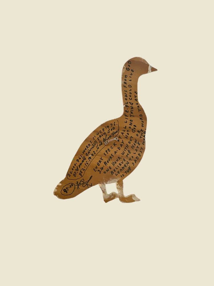 Goose World Land of the Fowls, 15 December 1992. Paint and marker on wood, numbered 26.000.961.