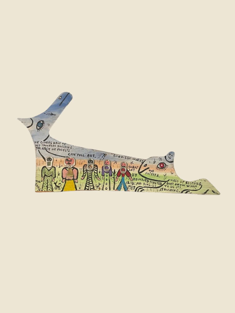 The Sniffer, 21 June 1987. Paint, marker and soda can tabs on wood, numbered 6.000.661.