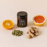 An iced tea with fresh lemon, entertaining in a kitchen on a hot summer afternoon. This scent is made up of bright grapefruit and orange deepened by hints of cardamom and ginger.