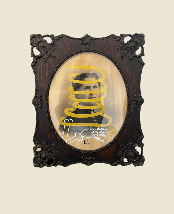 Intertwangled framed photo with paint on glass. Signed by artist.