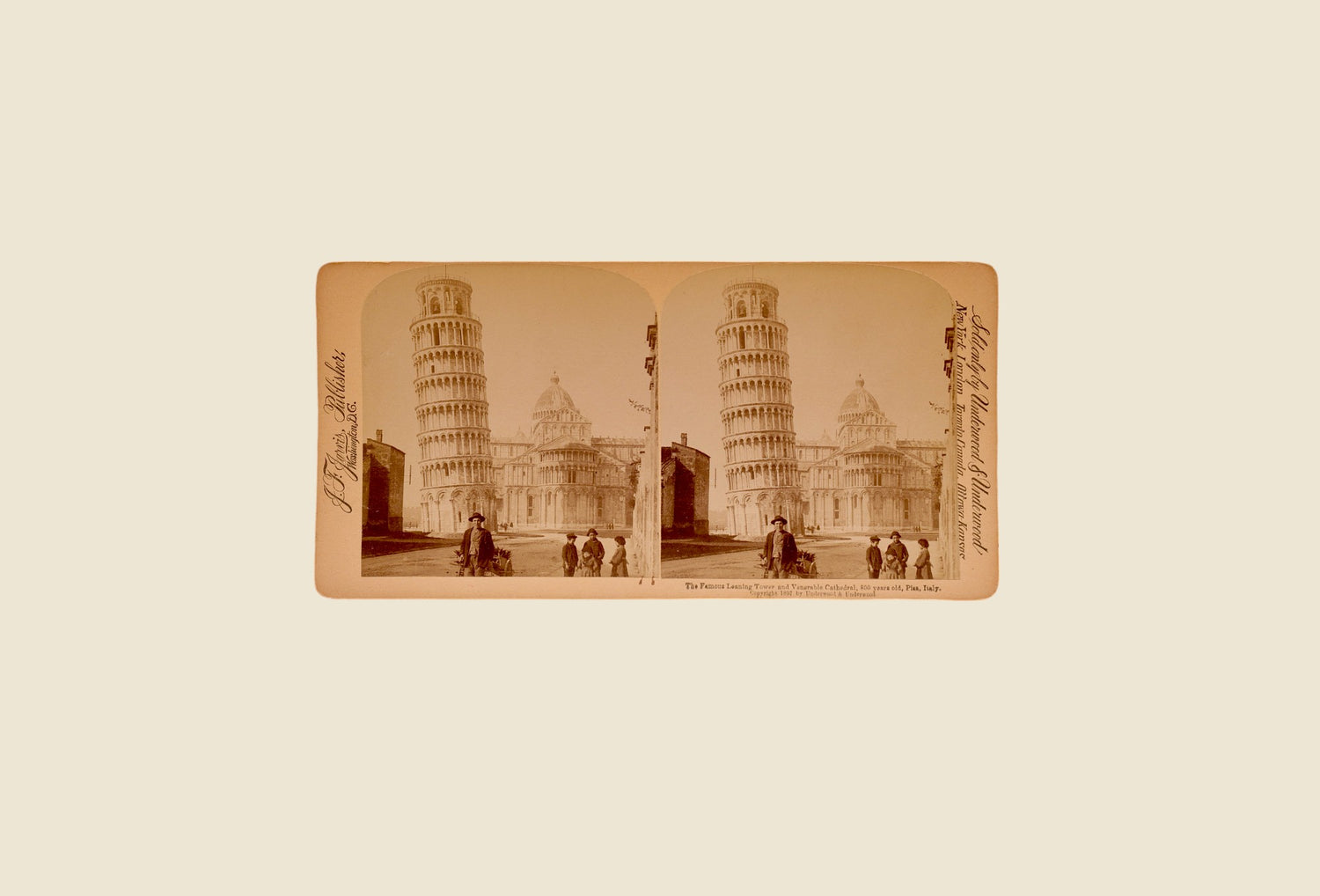 Stereoscope cards have an intentional bend. Any distortion you see in the photos is because of the curvature of the card.