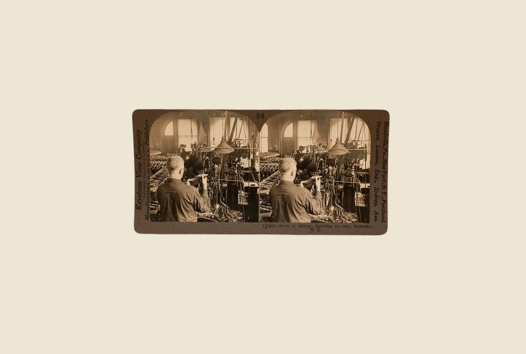 Stereoscope Card- Shoes in Making: Stitching the Sole