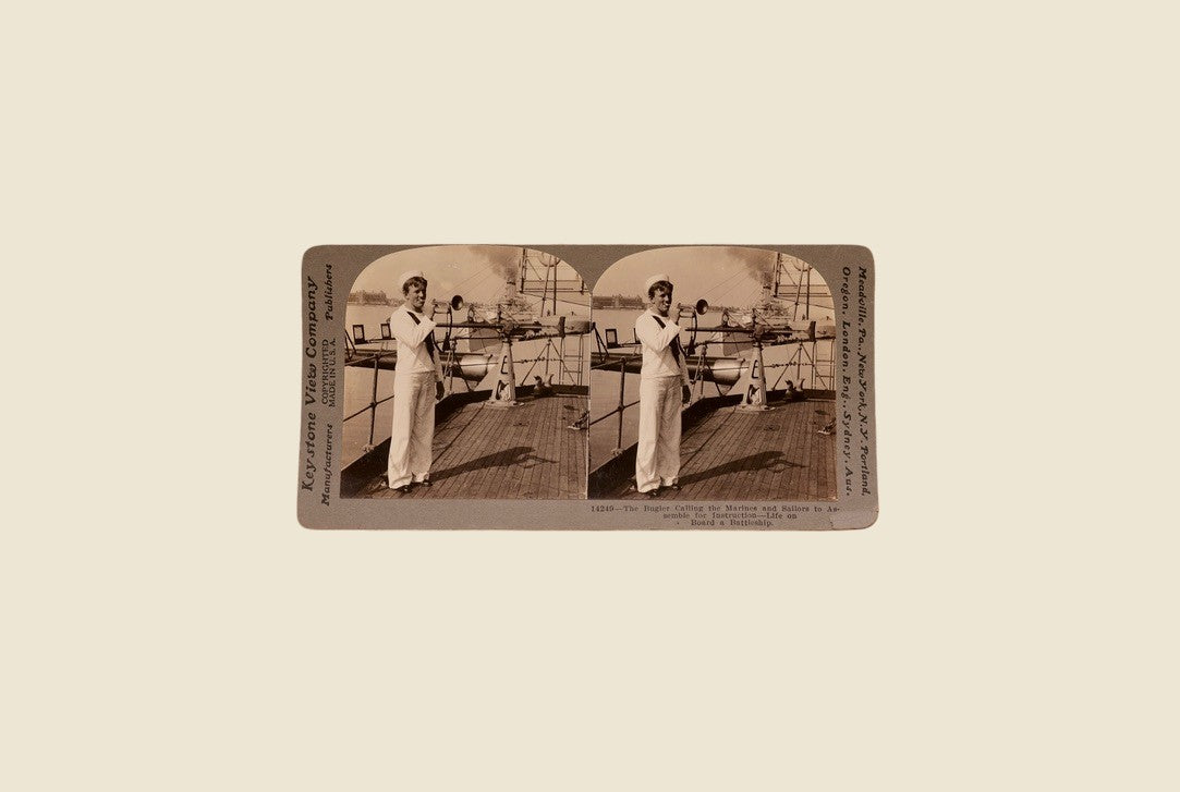 Stereoscope cards have an intentional bend. Any distortion you see in the photos is because of the curvature of the card.