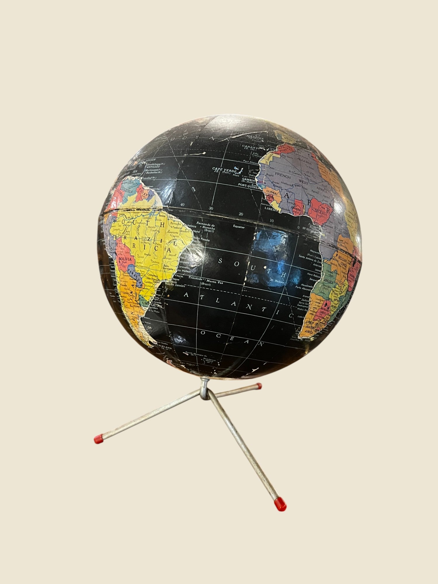 Vintage Globe by Replogle Globes, USA Circa 1960. Tripod base