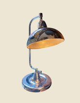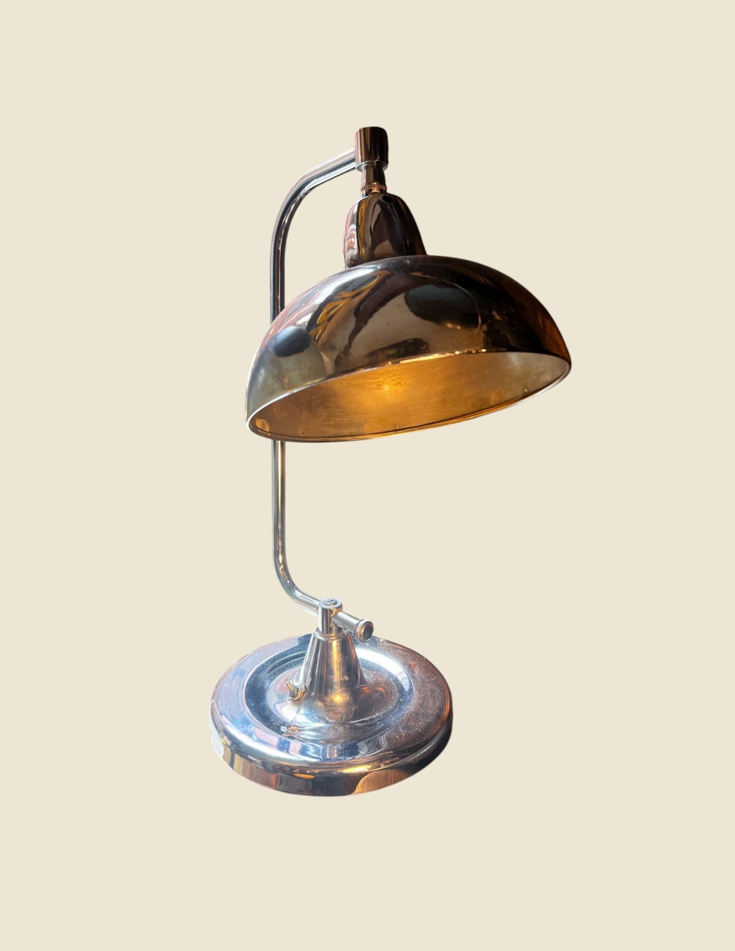 A polished chrome jeweler's lamp wth adjustable shade and pivoting base, USA, circa 1940